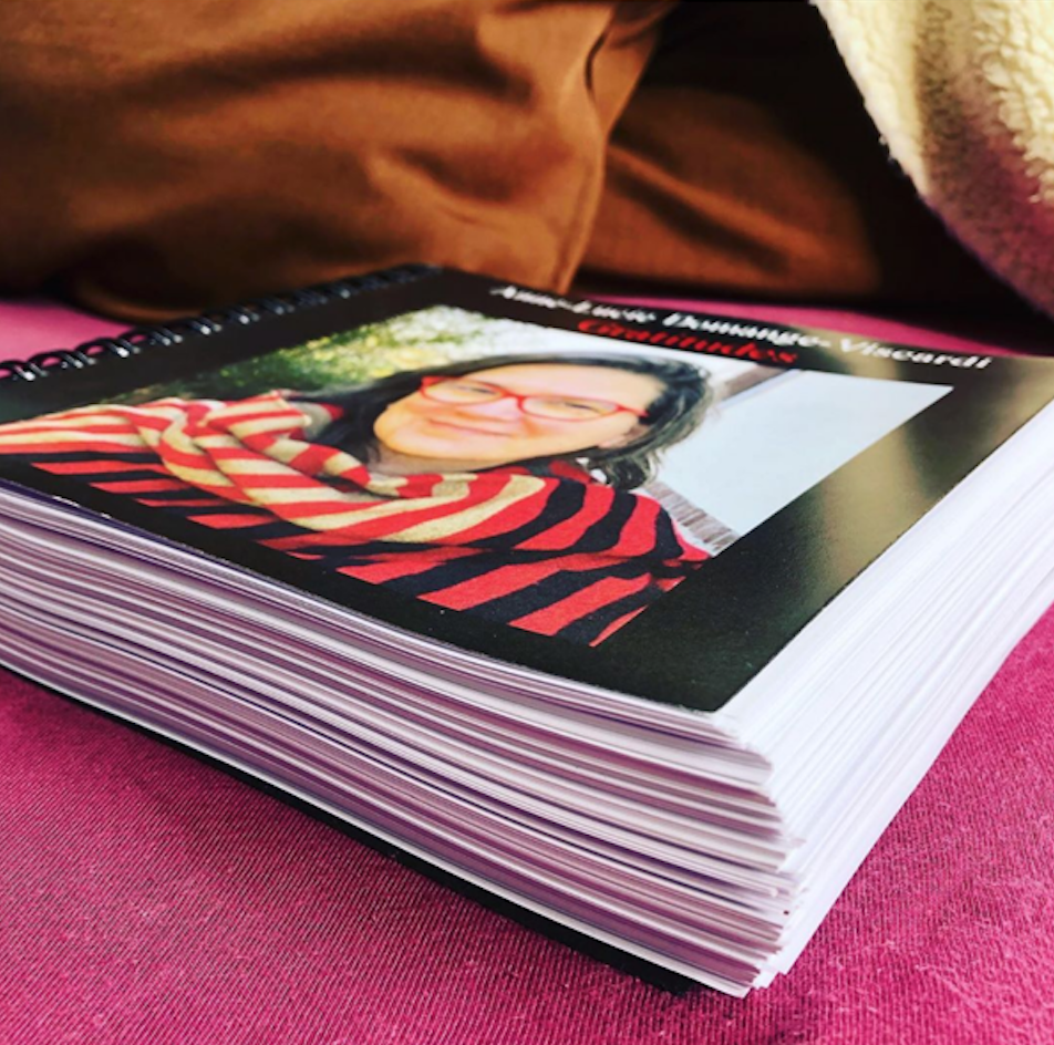 L’impression de toutes mes gratitudes du jour 1 au jour 347… j’ai été hyper touchée par ce cadeau car je sais la logistique et le temps que cela a représenté pour le réaliser ! J’ai été super touchée parce que j’ai vu en volume ce que représentait 347 jours de « merci à la vie » avec les illustrations ! Ah ah ! Je suis bavarde en fait 😁